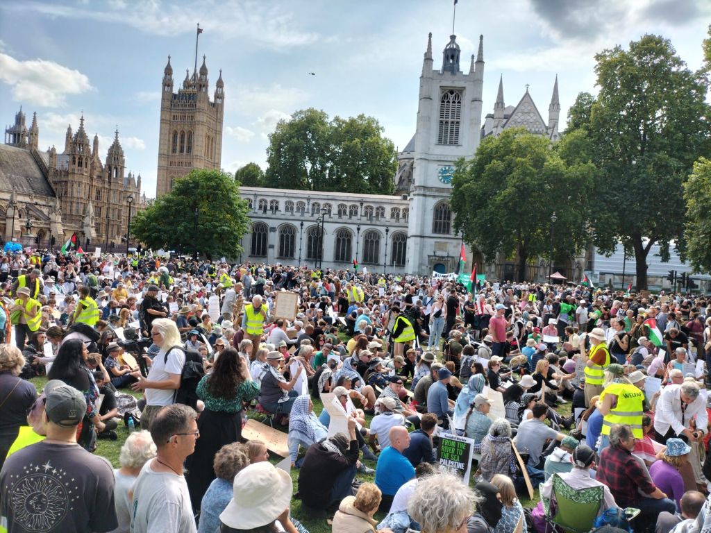At least 1500 people have joined a mass action of defiance to the proscription of Palestine Action and the British government’s complicity in genocide in Gaza. A delegation of trade unionists and signatories to the Protest is not Terrorism open letter is in Parliament Square to witness and condemn the repressive consequences of the ban on Palestine.