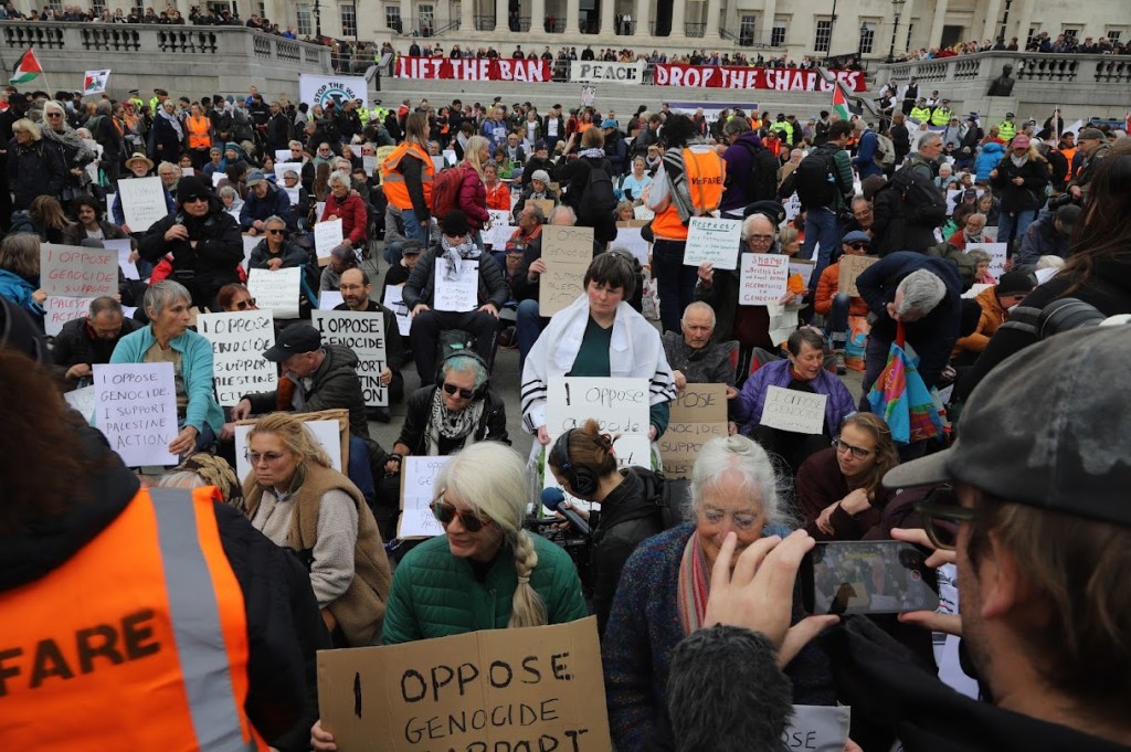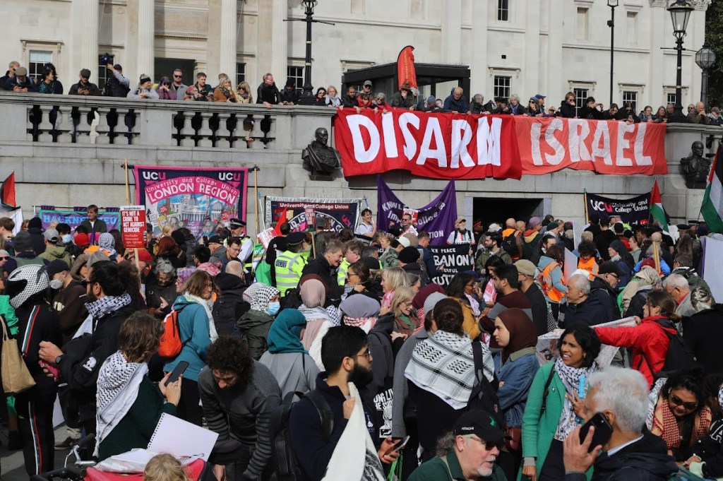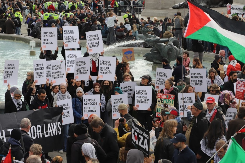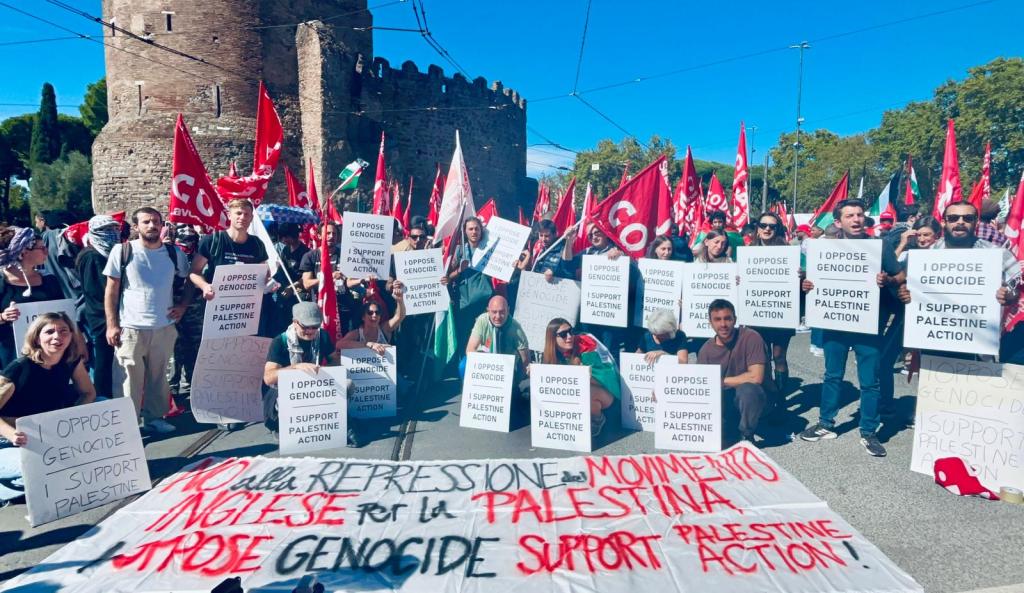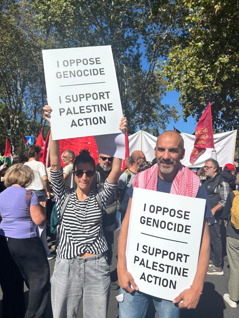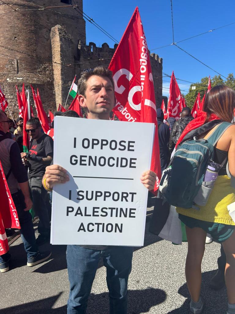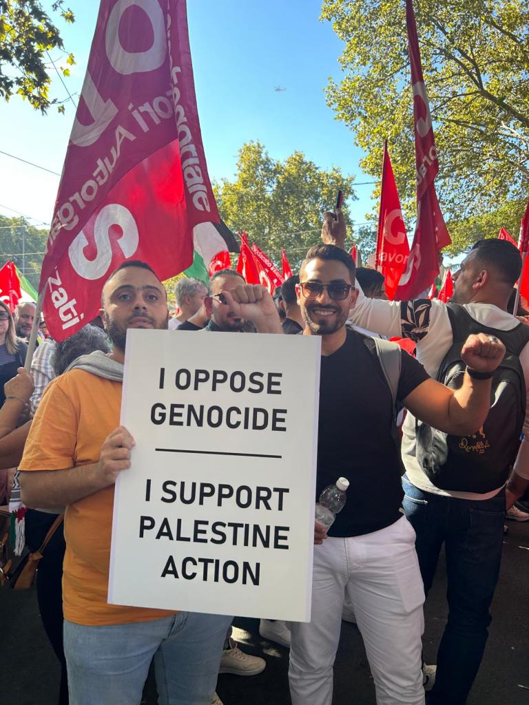 There was solidarity with the protest in London from marchers on the million-strong demonstration for Palestine in Rome. Activists there held up the same signs to highlight the repression taking place in Britain. The Rome march took place one day after a historic general strike for Palestine across Italy in response to Israeli attacks on the Global Sumud Flotilla.
