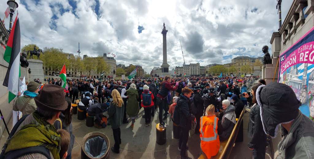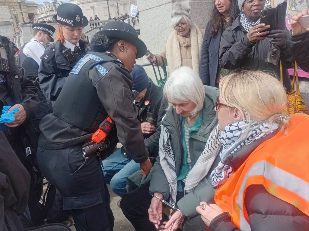 The Metropolitan Police arrested hundreds of people for holding cardboard signs with the words “I oppose genocide, I support Palestine Action” in Trafalgar Square on 11 April, despite the High Court ruling that the government’s ban on the direct action group is unlawful. Hundreds of officers from the Met, assisted by police from as far away as Wales hauled off protestors in handcuffs to shouts of “shame” from watching crowds.